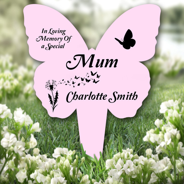 Butterfly Pink Mum Dandelion Remembrance Grave Garden Plaque Memorial Stake